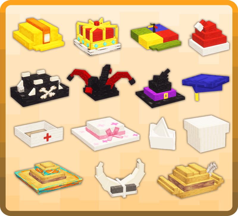 Stand out from all other servers with 15 Highly Detailed Hats! Surprise your players with never-seen before cosmetics.