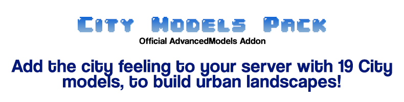 Elevate Your Server with These Stunning City Models!Transform your Minecraft server into a thriving urban environment with 19 expertly designed city models. Easy to install, EULA-friendly, and perfect for server decoration, creating immersive player experiences.Enjoy seamless drag & drop installation for the AdvancedModels plugin, without requiring any mods or texture packs installed on the server.See this pack live on our official test server! (Latest Minecraft Version)
