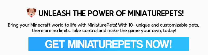 Bring your Minecraft world to life with the cutest and most customizable pets!Welcome to Miniature Pets - the world of enchanting, cuddly creatures that bring joy to your server! Create, customize and bring your own pet friend along for all your adventures. Choose from the 10+ custom 3D pets, each with its own unique animations, abilities, and personalities.Miniature Pets doesn't require any texture packs or resource packs to be installedYou can ride your pet, wear it as a hat, disguise as it, and even give it a special name! And the best part? All of our features are EULA compliant, so you can use them safely on your server. So why wait? Join the Miniature Pets community today and add a dash of magic to your Minecraft world!OUR PET MODELS DO NOT REQUIRE TEXTURE OR RESOURCE PACKS, BUTMiniaturePets supports ModelEngine models, and here's a showcase of some custom community models as pets: